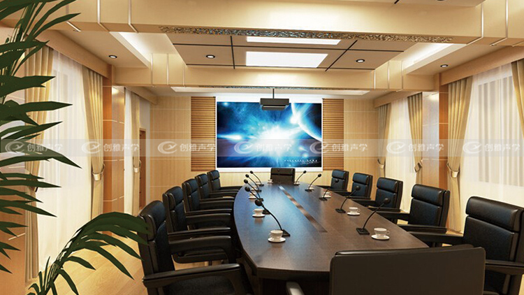 在會議室的控制中、高頻混響時間,除了主人依靠聽眾本身和座椅的吸聲外,應(yīng)根據(jù)混響計算,確實在墻面配置強吸聲材料,這對平行側(cè)墻和凹弧形墻面來說,還可消除顫動回聲和聲聚焦等缺陷。作為墻面控制中、高頻的吸聲材料,通常有玻璃棉、礦棉板,外設(shè)阻燃織物或壁毯,也可配置鉆孔吸聲結(jié)構(gòu)(鋁板或纖維板鉆孔)或織物包阻燃泡沫塑料等構(gòu)造。