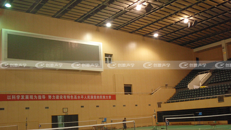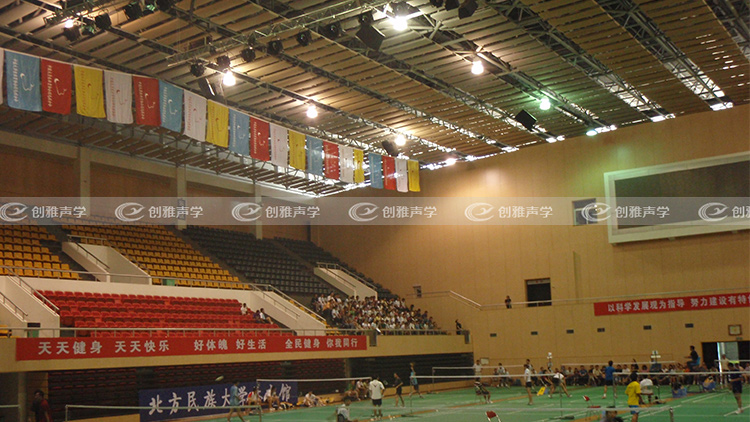 北方民族大學體育館是融體育賽事、文藝演出和會議于一體的功能全面、設(shè)施完備的綜合性體育場館,本次聲學工程項目墻面采用木質(zhì)吸聲板,天花采用了空間吸聲體,聲壓級優(yōu)于原系統(tǒng),并減少聲音外泄對周邊宿舍、教學樓的影響。 |