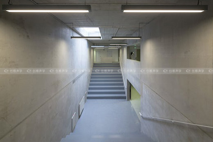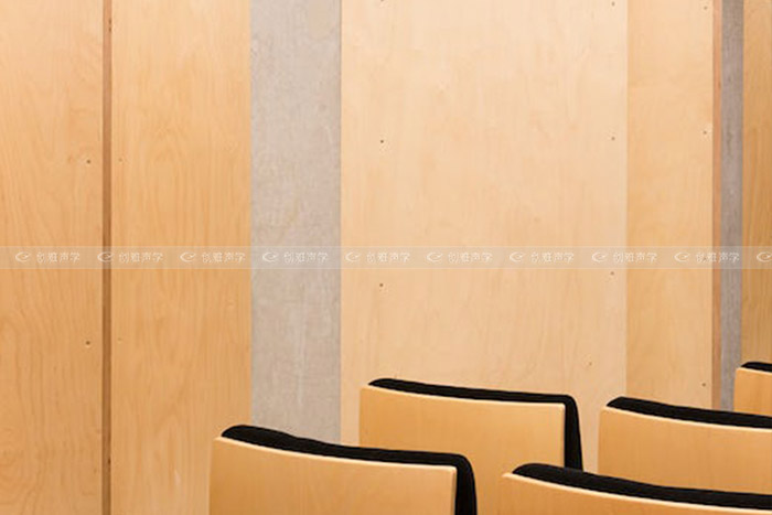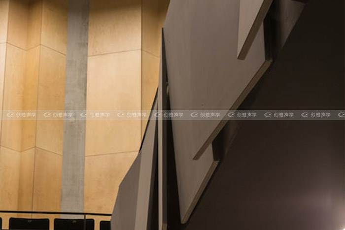 該建筑具有聲學和熱性能:混凝土墻、隔熱層、雙層真空玻璃窗、實木聲學反射板和穿孔吸音鋁板。