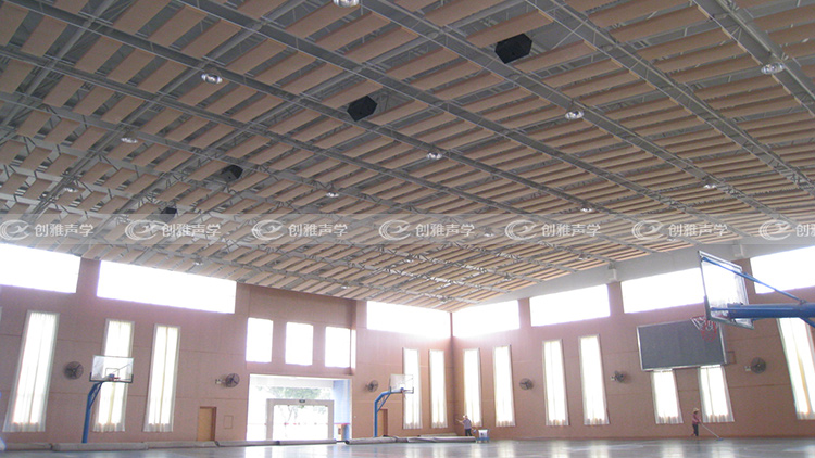 三水中學(xué)附屬初中重視學(xué)生個性和特長的發(fā)展,學(xué)校把豐富多彩的第二課堂活動當作第一課堂的延伸和補充,各學(xué)科均成立興趣小組。學(xué)校組建了翹楚文學(xué)社、話劇社、演講口才協(xié)會、羽毛球協(xié)會、乒乓球協(xié)會、籃球隊、足球隊、舞蹈隊、跆拳道、漫畫社、素描班等多個社團,廣泛而深入地開展第二課堂活動;學(xué)校還利用學(xué)生校長助理競選、藝術(shù)節(jié)、體育節(jié)、英語俱樂部、手工大賽、讀書活動大賽、知識擂臺賽等活動,激發(fā)學(xué)生的參與熱情,為每一個學(xué)生的全面發(fā)展提供了廣闊的空間。要確保體育館功能能夠正常的使用,空間的聲學(xué)處理是必不可少的。體育館在沒有做聲學(xué)處理之前容易出現(xiàn)一些聲學(xué)問題,如由于體育館容積大,自由聲程過大,容易產(chǎn)生回聲和多重回聲,使人聽音混濁。在體育館的天花部分使用了空間吸聲體,墻面使用了槽木吸音板。 |