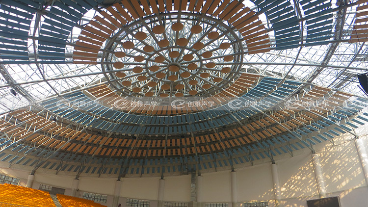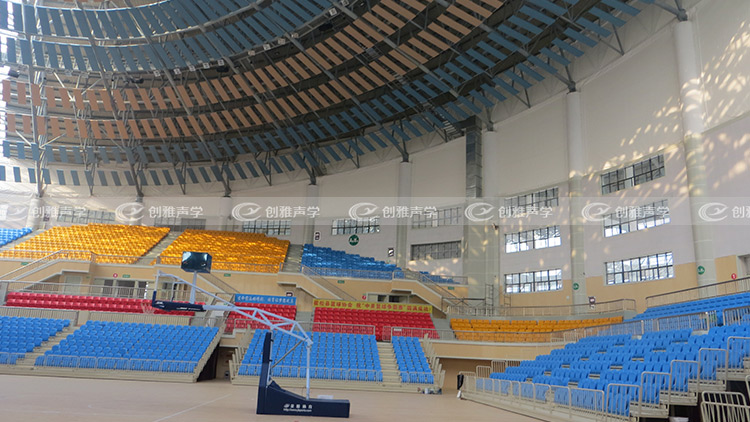 體育場建筑形態(tài)具有節(jié)奏韻律感,形態(tài)優(yōu)雅的68片鋼結(jié)構(gòu)屋蓋有序而富有變化,結(jié)構(gòu)與造型得到統(tǒng)一,建筑富有力的節(jié)奏感和韻律感。體育館與訓(xùn)練館有機(jī)的結(jié)合在一起,功能互補(bǔ),建筑形態(tài)自由完整,重復(fù)韻律中富于變化,造型采用單元式三角形處理手法,使建筑充滿了體育建筑的力量感。游泳館的造型新穎,尊重自然規(guī)律采用方整規(guī)則的整體形態(tài),與基地內(nèi)其他場館遙相呼應(yīng)。場館天花主要采用了平板空間吸聲體,墻面采用槽木吸聲板的吸聲材料控制混響時間。 |