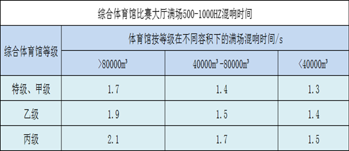 混響時間的要求:根據JGJ 31-2003《體育建筑設計規范》,