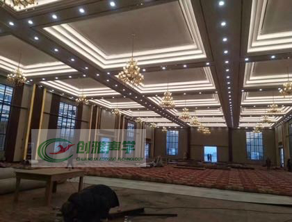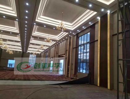 江西贛州酒店會議室(多功能廳)的墻面使用的是環保型軟包搭配防火型吸音板.