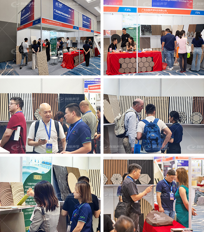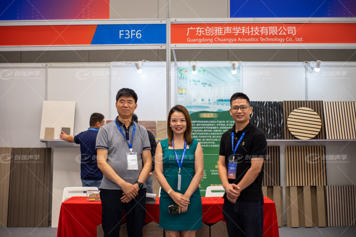 廣東創(chuàng)雅聲學科技有限公司作為聲學解決方案提供商,成功參加了這次大會,并作為特邀嘉賓分享講話,主題為“砂巖吸聲板的應用”。我們以卓越的技術實力和創(chuàng)新產品吸引了大量觀眾的關注。