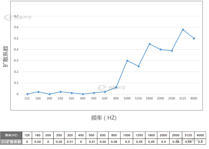 主要特點:D1擴散體能有效地立體擴散聲音能量,防止回聲和駐波,起到全方位擴散作用,有效改善聲音的明亮度和空間感。擴散頻率范圍: 615Hz-3125Hz. 最高環保性能達E1級。